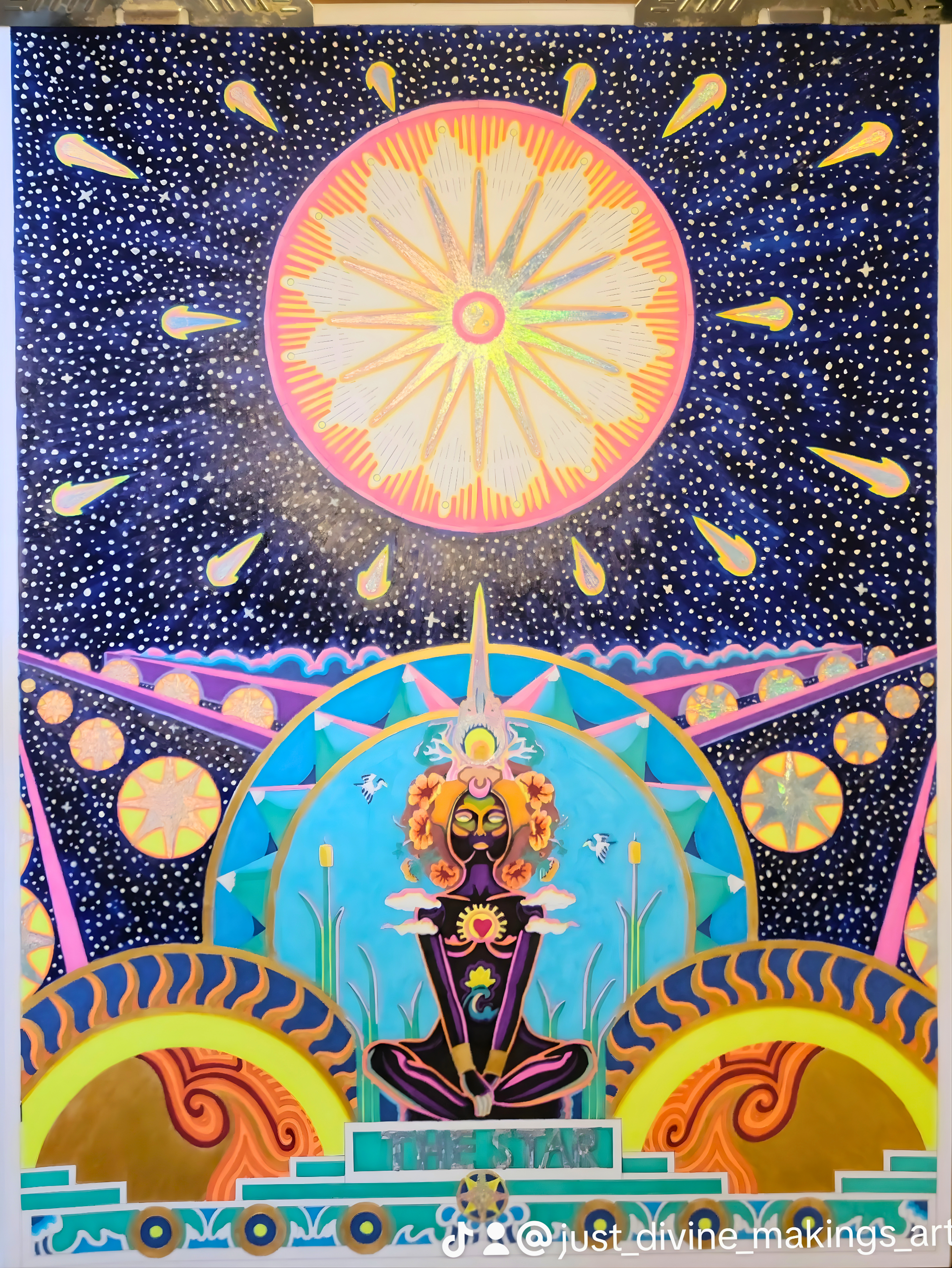 The Sun radiates sacred truth, dissolving the veils of shadow. It heralds illumination, cosmic joy, and a return to the soul’s purest essence where the divine child awakens in bliss.