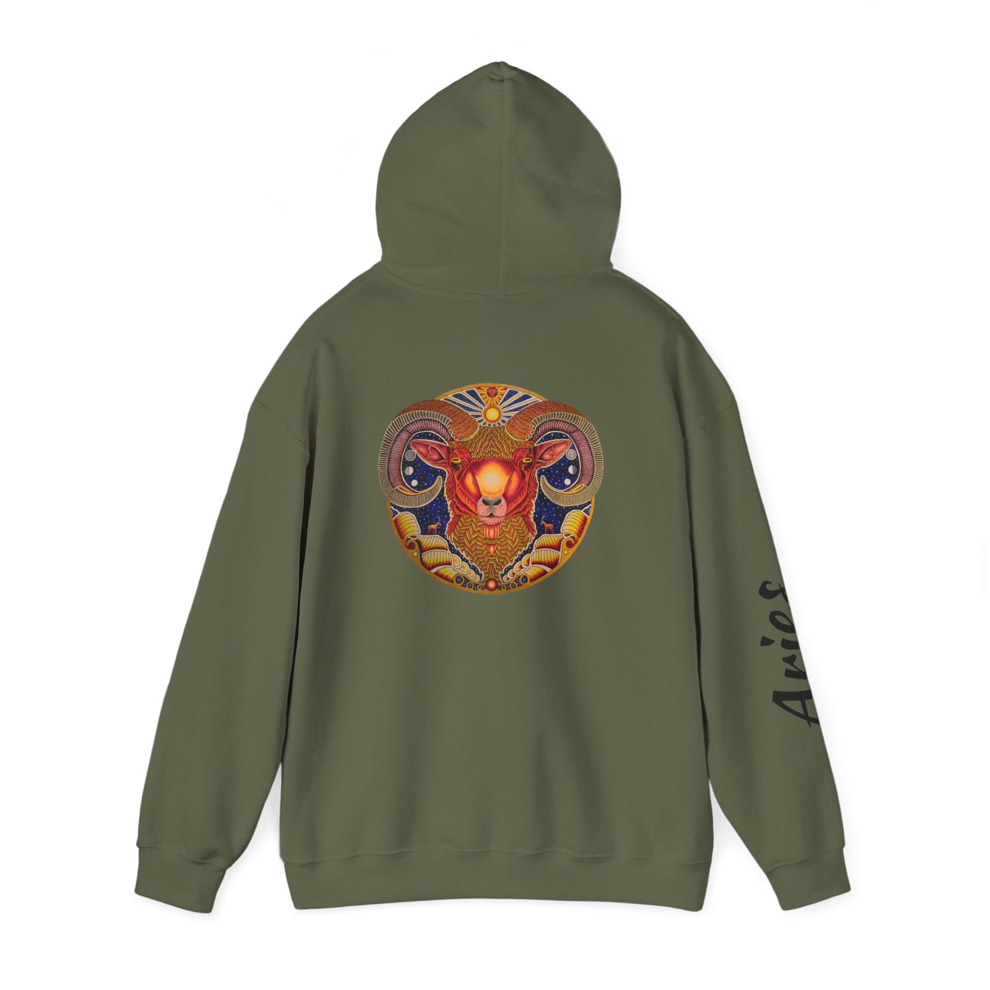 Aries Zodiac Hoodie - Hand-Drawn Celestial Design (Non-AI)