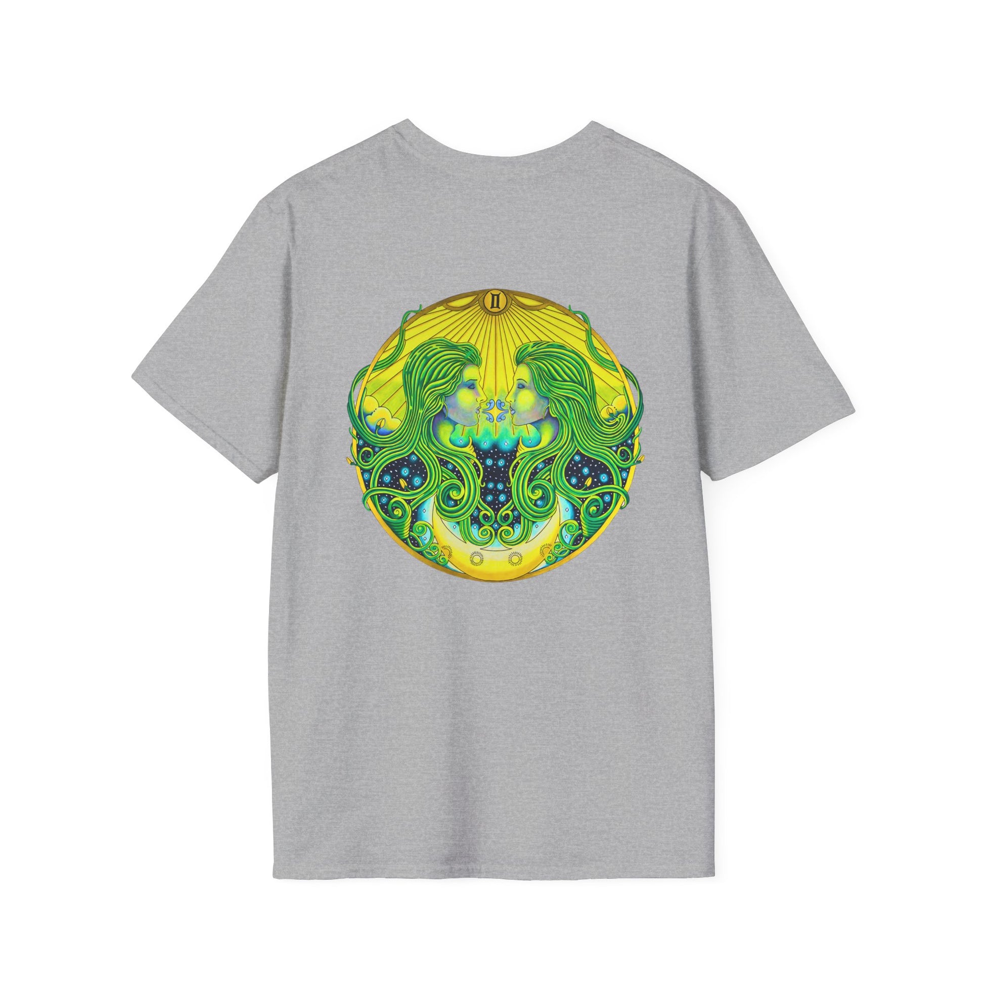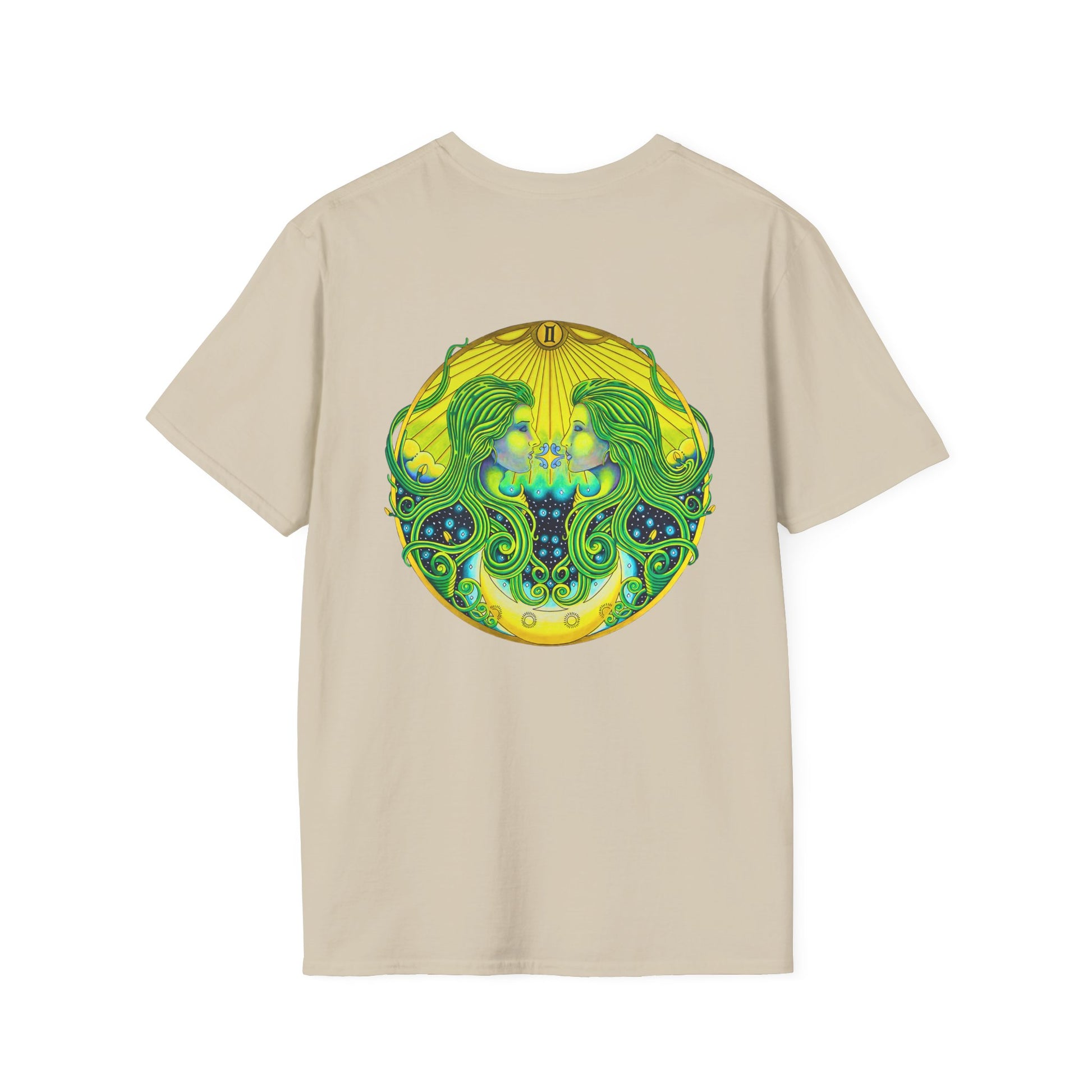 Gemini Zodiac Softstyle T-Shirt - Hand-Drawn Celestial Design (Non-AI)