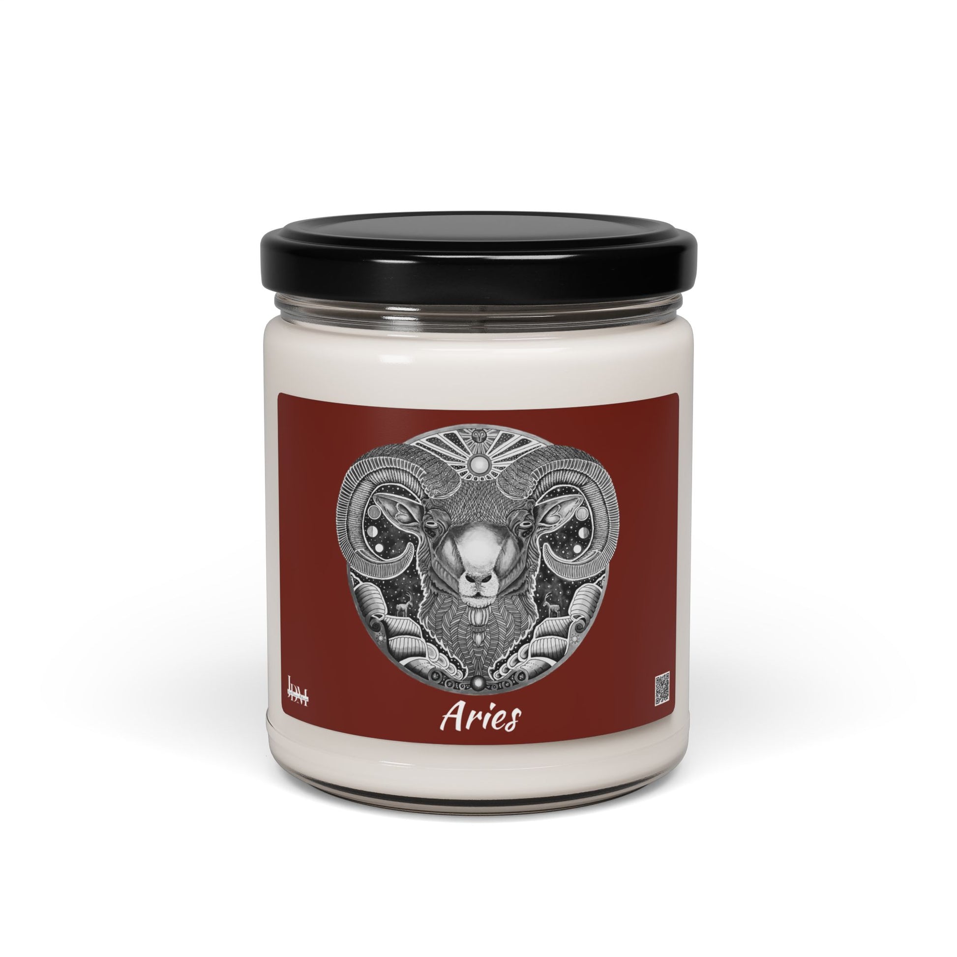 Hand-Drawn Aries Zodiac Soy Candle | Astrology Horoscope | Celestial Scented Vegan Candle | Fire Sign Birthday Gift | Non-AI Original Art | Universal Decor