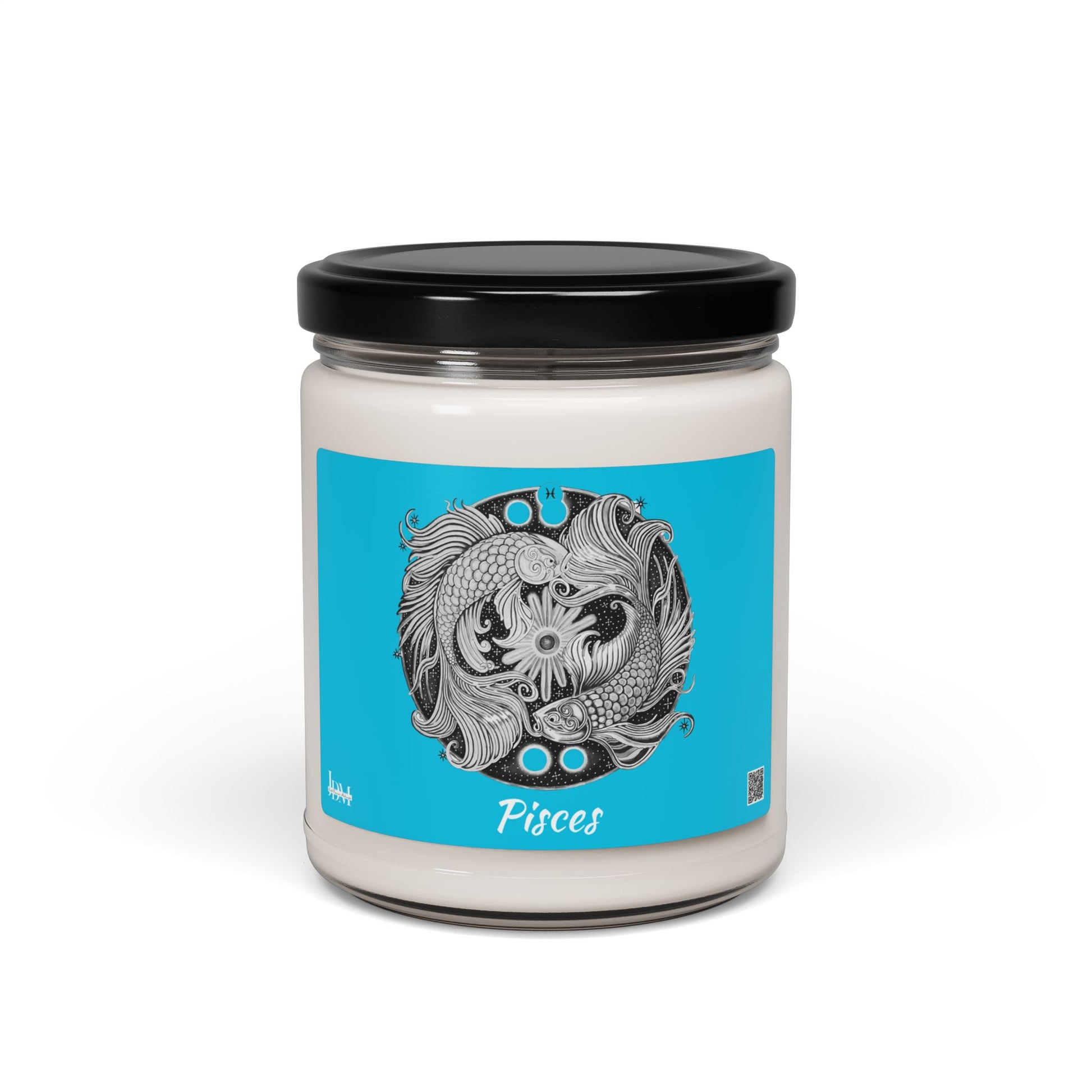 Hand-Drawn Pisces Zodiac Soy Candle | Astrology Horoscope | Celestial Scented Vegan Candle | Fire Sign Birthday Gift | Non-AI Original Art | Universal Decor