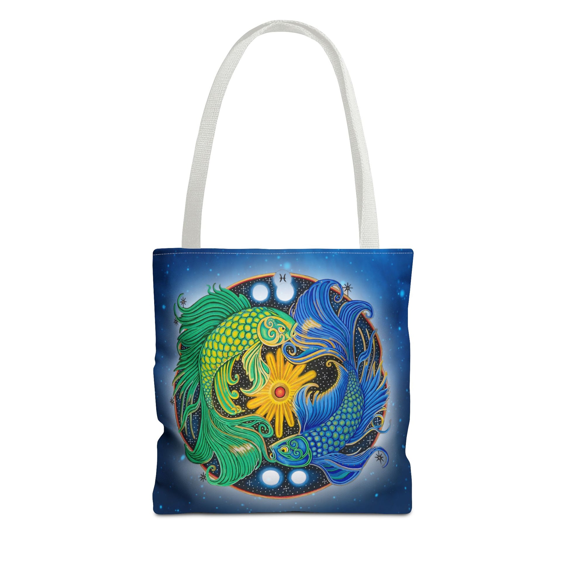 Pisces Zodiac Tote Bag - Hand-Drawn Celestial Design (Non-AI)
