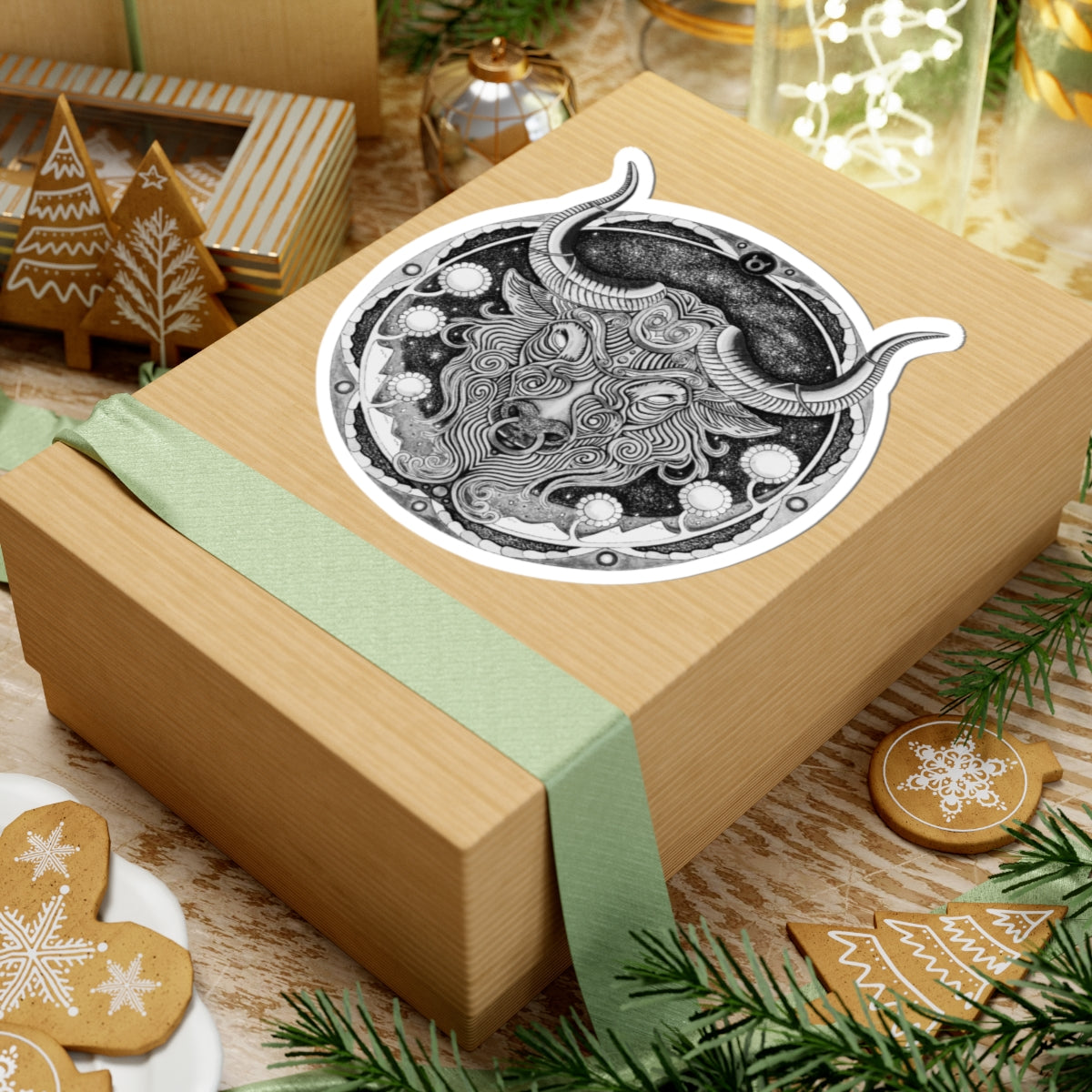 Taurus Zodiac Kiss-Cut Sticker - Hand-Drawn Celestial Design (Non-AI) Universal